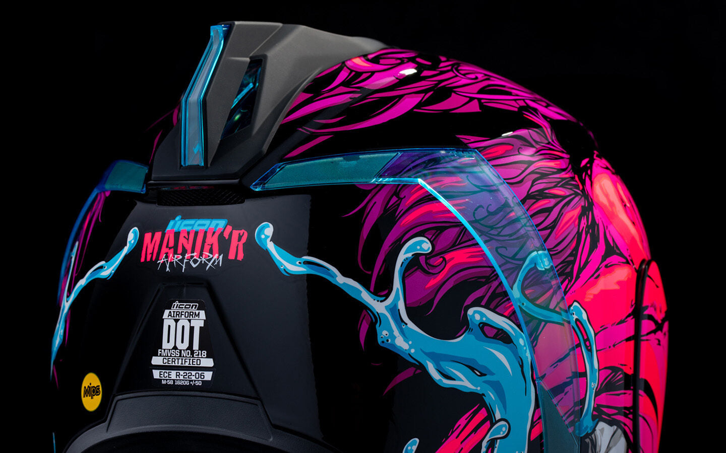 Is it an alien or a slavering monster? Either way, the Airform Manik’RR Helmet is packed with perks. It features the MIPS® Brain Protection System (BPS), the revolutionary rotation reduction system for deflecting energy in an impact. The Manik’RR is also ECE22.06 certified. It arrives with both clear and RST Fog-Free Optics™ shields plus a Dark Smoke internal DropShield™, so you can stalk the streets during the day or at night.