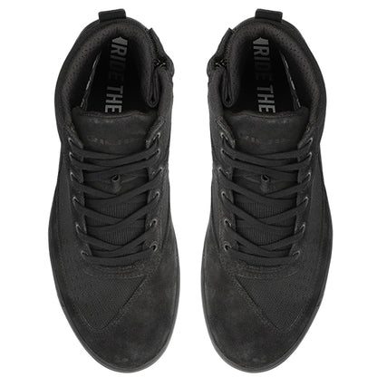 - Lacing closure in combination with a YKK side zipper offering an easy step-in
